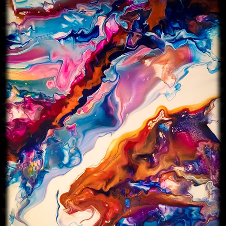 Is a form of abstract art that uses acrylic paints with a runny (fluid)consistency. The acrylic paints react with each other when combined together to make interesting and visually organic motifs. Fluid acrylics can be used on many types of substrates and in many different forms such as pouring, dripping, swirling, glazing, dipping and many other effects.